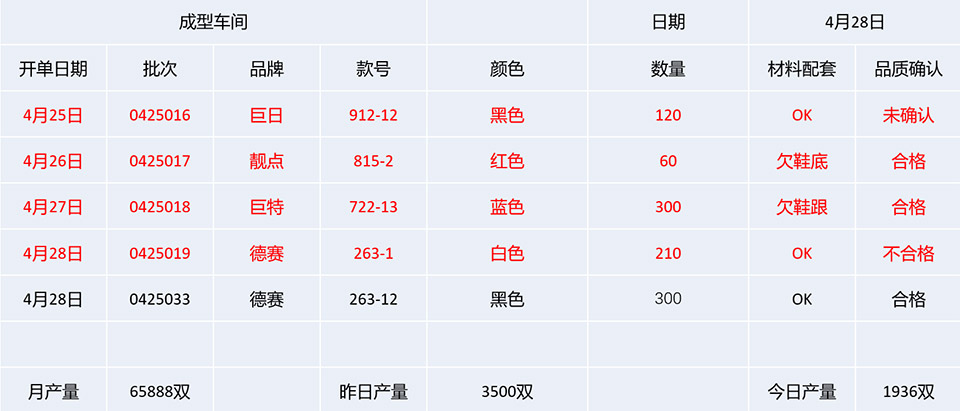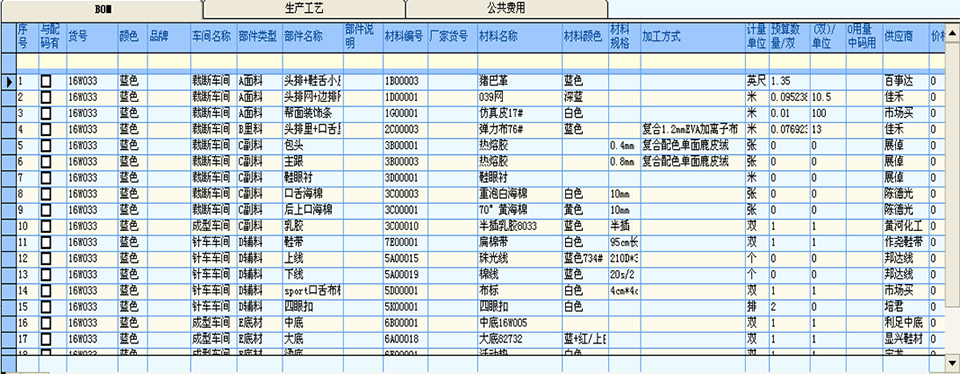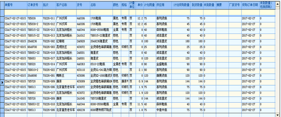 (2)根据鞋业特点提供了尺码、颜色管理的全面解决方案 由于鞋业与别的产业有更多的不同特性,如一个款式多种颜色,一种产品有不同尺码等等,手工作业管理要做到精细比较频繁,工作量大,并且容易出错。本系统为此提供了全面的解决方案,不但对成品管理更加全面,更加精细,而且大大减轻了工作量,快捷准确。